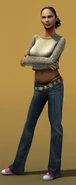 She is a great self-defense martial arts enthusiast, probably to vent a furious and aggressive character; the game's website mentioned she's an expert in taekwondo. She distinguished herself at Leafmore during an introduction to weapons for self defense. She is very comfortable with holding a gun, so much so, that she can fire it without supporting it with her left hand (unlike the rest of the survivors).
