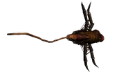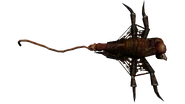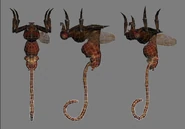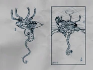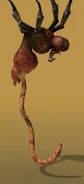 This monster has the look of a giant scorpion fly but a closer inspection reveals its true and disgusting nature: the upper half of its body is made by a disproportionate human fetus that uses a mutated umbilical cord as a tentacle, while the bottom half is an equally gigantic wingless fly that is in charge of locomotion. Herbert Friedman described this kind of abomination as a "Mutation Type 4", something that happens when a contaminated subject is left in a non-sterile environment so it is likely to come into contact with insects or other small parasites, which become part of the metamorphosis mixing their characters with human ones: in layman's terms, he left some Mortifilia-infected fetuses exposed to unprotected environment, so they merged with the flies that swarmed on them.