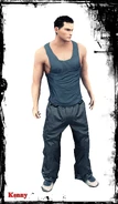 - There is a parallel comparison between Kenny and professional wrestler/actor Jessie Godderz (aka Mr. PEC-Tacular). Both bare a similar resemblance and physique, started as teenage athletes, play football, have a sister (Godderz also has three brothers), act tough and cocky, became a father and a villian (Godderz only portrays himself as a villain on television), and can move heavy objects. Kenny maybe a bodybuilder, Godderz was a professional bodybuilder. Kenny's outfits in the games is similar to the ones Godderz wore when he was a contestant for two seasons on Big Brother. Kenny is possibly a fan of Arnold Schwarzenegger as he quoted one of the actor's movie lines, Godderz is a fan of Schwarzenegger. The games were released years prior to Godderz's stardom. Interestingly, Kenny was born in 1984 and Godderz was born in 1986.