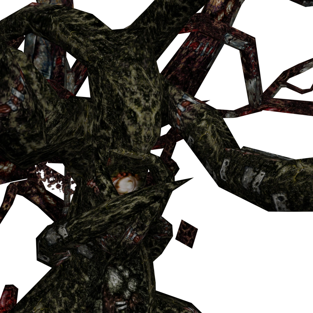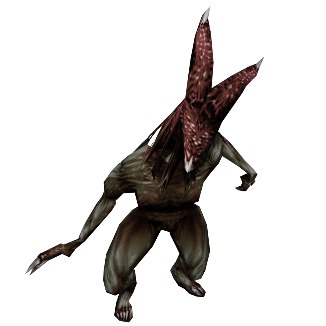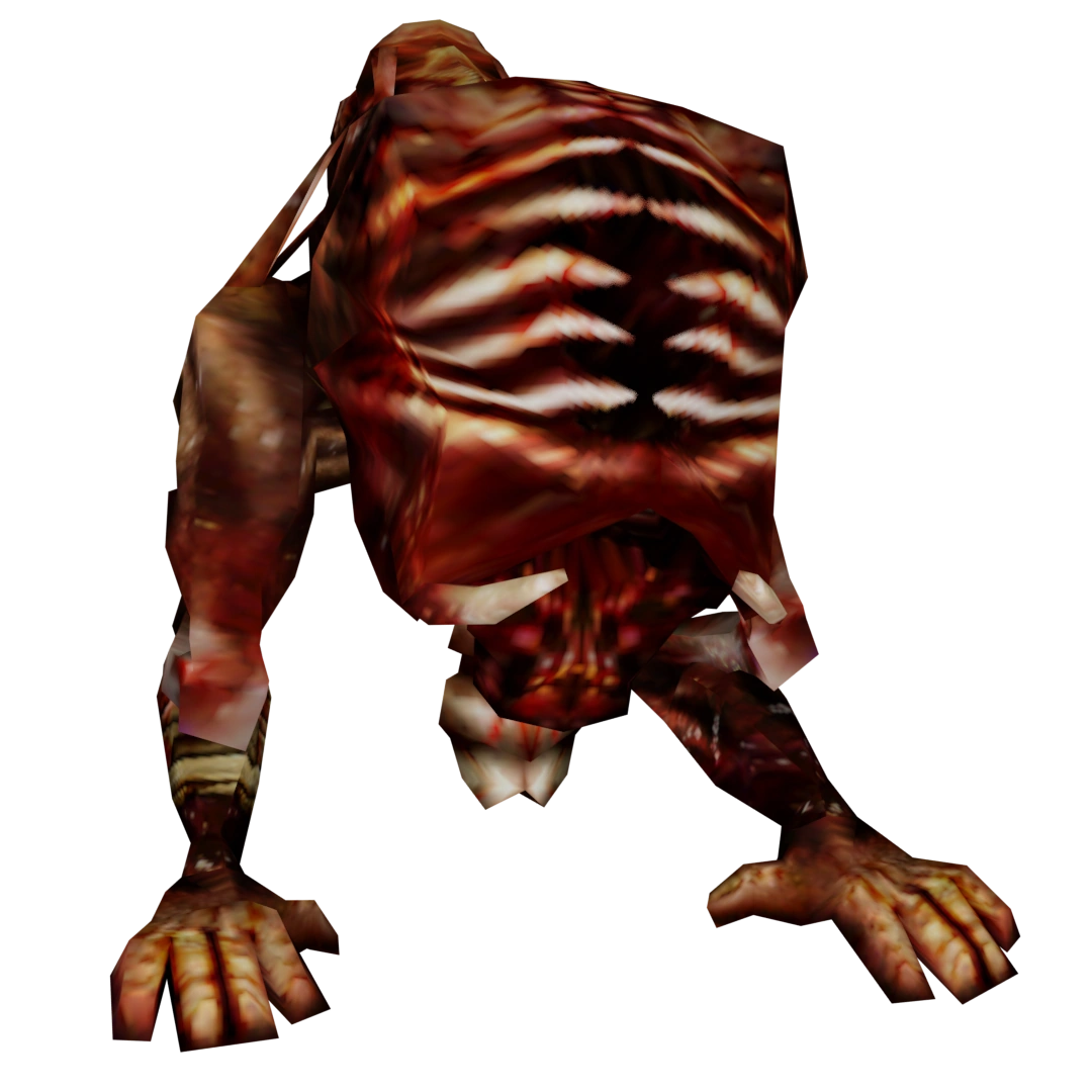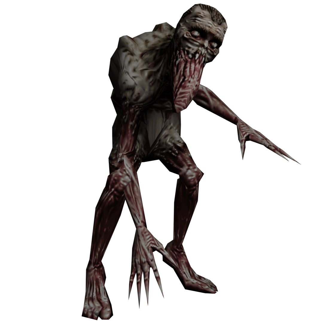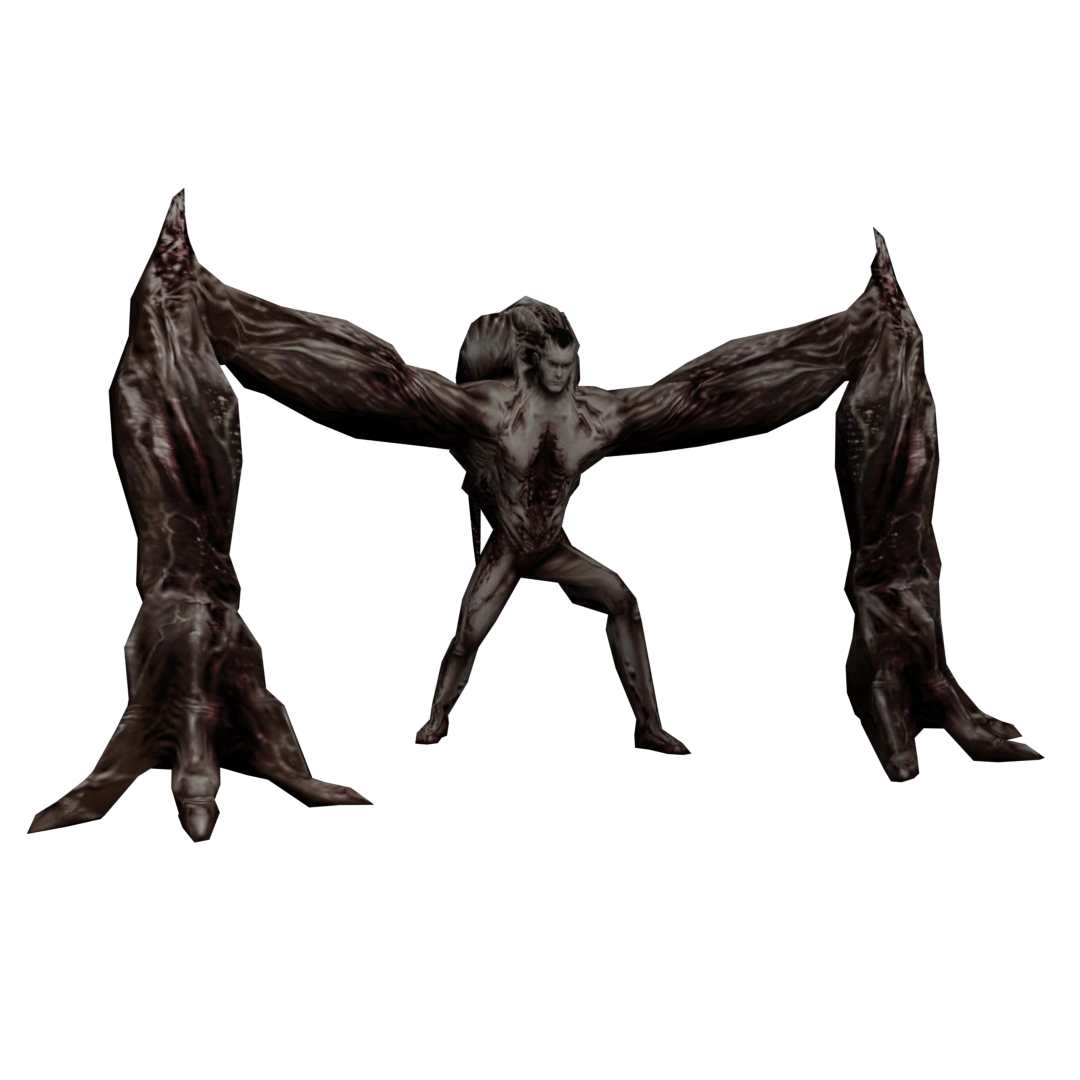 Homme Arbre | Basement, library, dormitory, gardens | The next form of evolution of the infected students. Most of their skin is completely gone, leaving only a skeleton with the bare minimum of muscles needed for its body to function. It's very slow but also quite powerful and resistant to damage. It slashes the player with its claws and can sometimes decapitate them with its tentacles. |