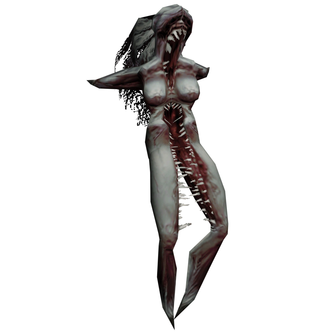Fly | Fallcreek's forest, Student dorm, hospital, dam, the lake, Leafmore | Mutated females that have lost their arms and have developed giant mouths that run from their face to the bottom of their body. They use their hair to fly freely around the area. They attack the player by stomping them with their legs, or they may also try to strangle them with their giant mouths. |