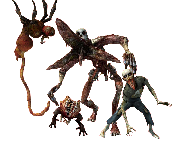 Progeny | The Mausoleum, AOL building, hospital, dam, the island, Jedidiah's house, Leafmore, AOL church | Small, spider-like creatures with eyes and a mouth. They replace the mordeurs from the first game. They can either bite the player or crawl onto them, attempting to strangle them in the process. They can be spawned by the Mother. |