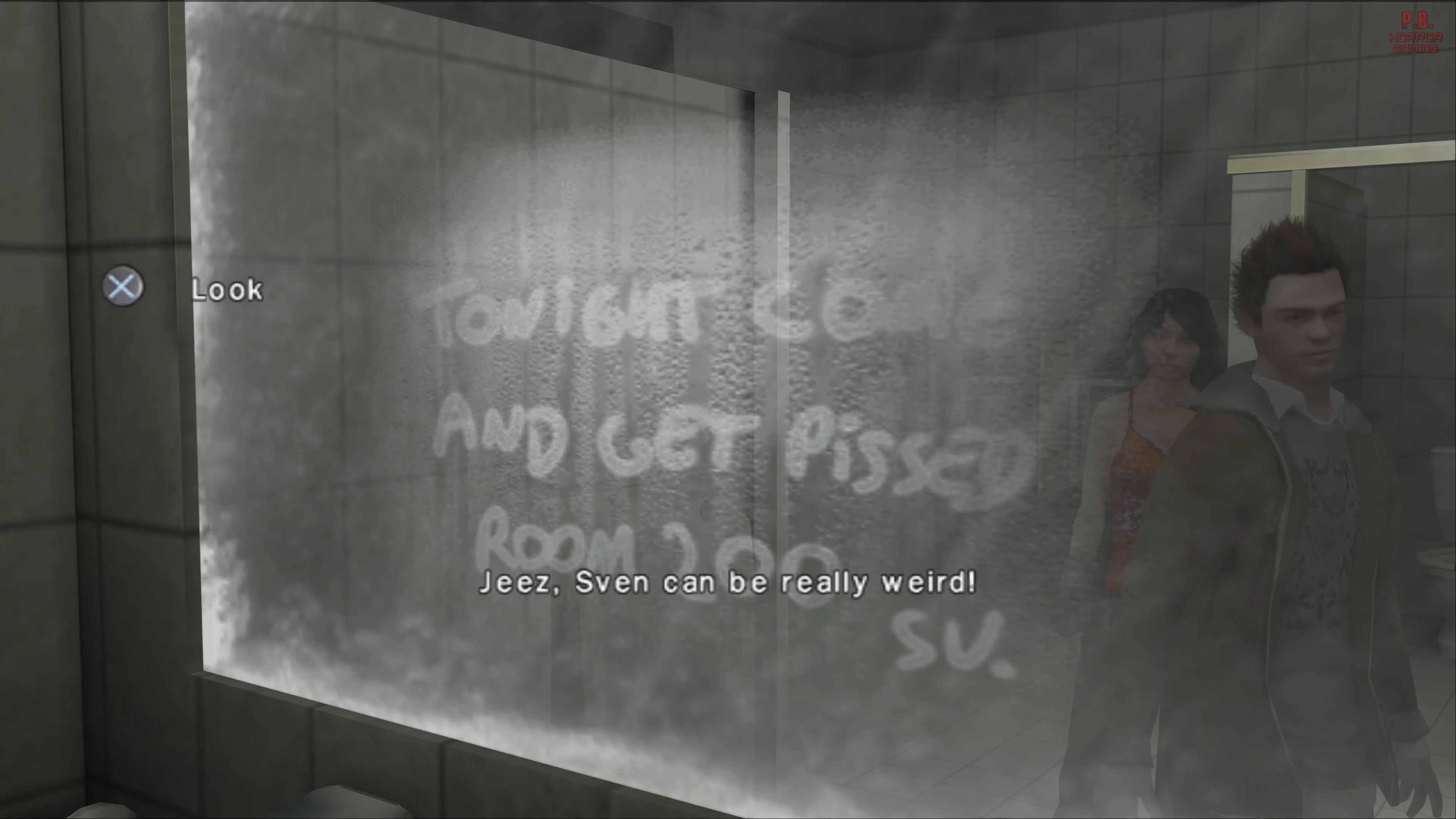 - In the restroom of the boys' dorm, there is a hidden message on the mirror. When the hot water's turned on, the steam reveals the message to be, "Tonight come and get pissed room 200 SV." This message was left by Sven, since this is his room number, as his friend Corey Wilde points out.